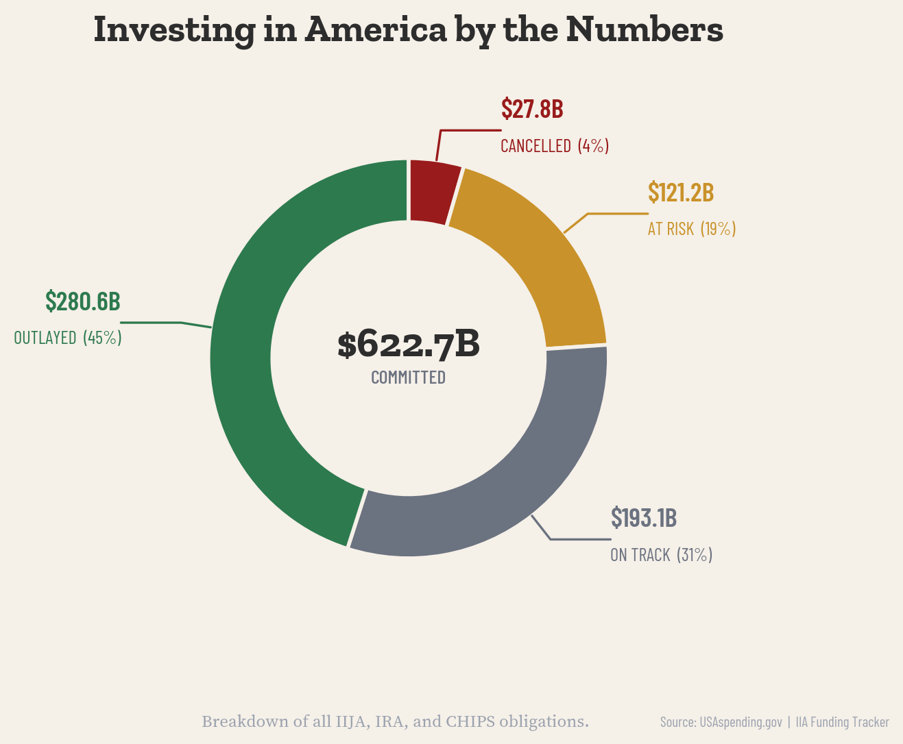 Did the Infrastructure Investment and Jobs Act, CHIPS and Science Act, and Inflation Reduction Act survive a year under Trump? A new tracker shows where the money went — and where it didn't.